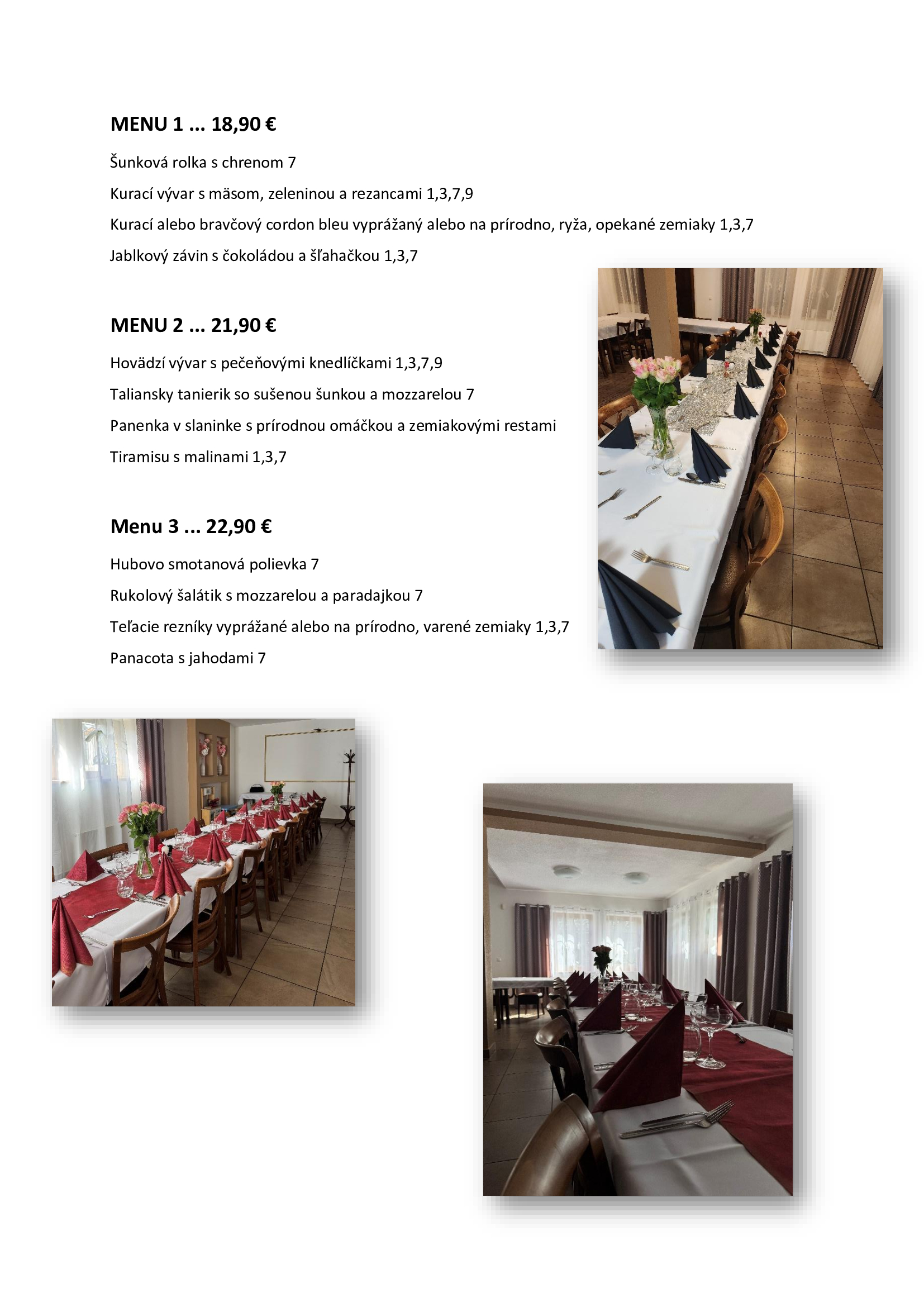 Naša reštaurácia ponúka nezabudnuteľné chute nielen slovenskej ale aj svetovej kuchyne. Našim potešením je spríjemnenie Vášho času stráveného u nás, s kvalitným jedlom pripraveným našimi kuchármi. Naše oddelené priestory sú ideálne na spoločne stretnutia, svadby, rodinné oslavy, krštiny či kary. Tešíme sa na Vašu návštevu.